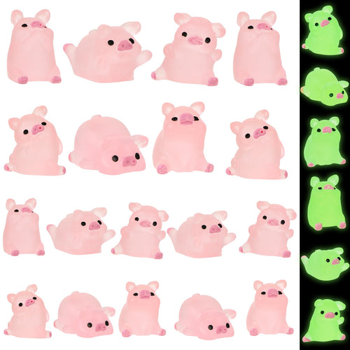 DREMISI 18 Pcs Mini Resin Luminous Pigs Fairy Garden Landscape Aquarium Decoration Potted Plant Decoration Glow in the Dark Miniature Figurines Ornament for DIY Garden Dollhouse Christmas (Light Pink)
