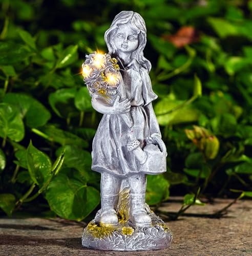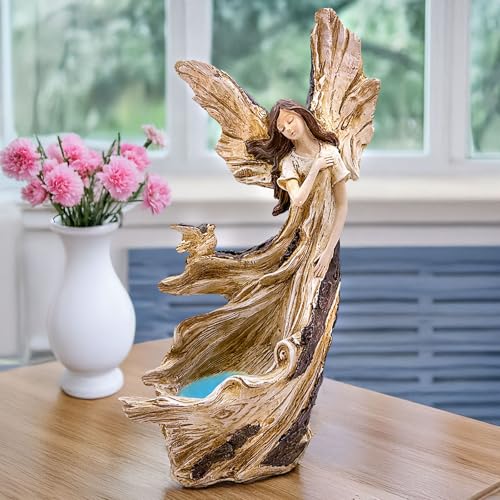 Euiroet Garden Fairy Large Garden Sculptures & Statues Resin with Solar Outdoor Light,Elf & Angel Solar Statue,Valentines Decoration Lawn Ornaments for Outdoor Decor,Gifts for Women Mom - 14.5"
