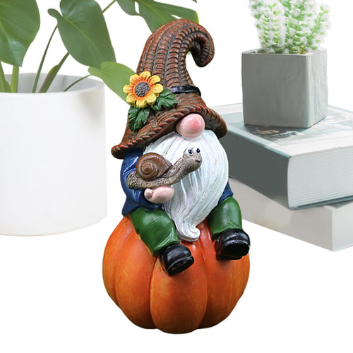 Fall Gnomes Decorations for Home,5.9 Inches Resin Garden Gnomes Sitting on A Pumpkin | Tiny Dwarf Statue Fall Figurine for Home Halloween Thanksgiving Decorations