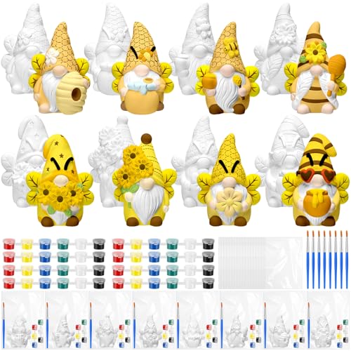 Foilswirl 8 Pcs Bee Gnome Ceramics to Paint Ready to Paint Your Own Ceramic Gnome Statues DIY Unpainted Ceramics Paintable Figurines Kit Crafts with Brush Palette for Boys Girls