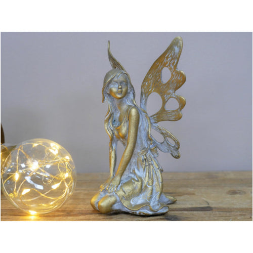 Fyne-Finds Antique Resin Fairy with Metal Wings Sculpture Statue Sitting Garden Yard Home Decor Ornament