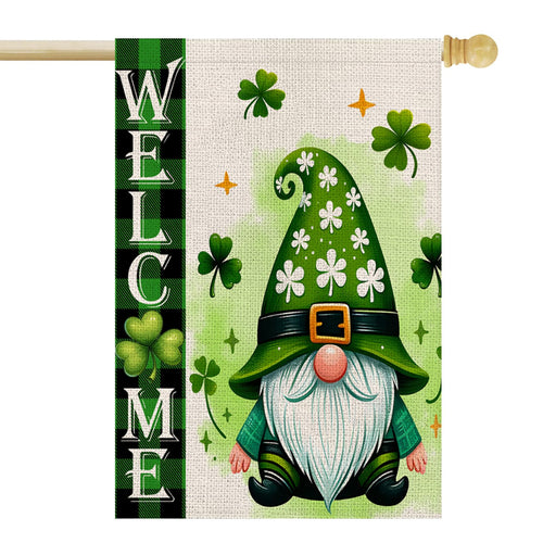 FUYUCHEN Welcome St Patricks Day Gnomes House Flag 28x40 Inch Double Sided Shamrock Lucky Clover Holiday Yard Large Flag Outdoor Decoration