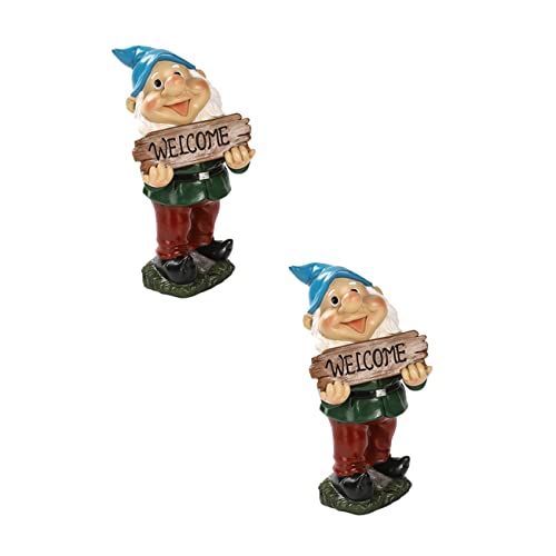 Happyyami 2pcs Welcome Garden Gnome Statue Charming Resin Figurine for Outdoor Decoration for Porch Ornaments and Garden Decor Lovely Gnome Welcome Sign