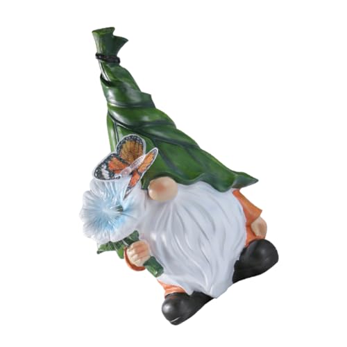 Happyyami 1pc Solar Powered Gnome Resin Figurine Decoration Elegant Garden Landscape Light for Home Decor Patio Lawn and Balcony Weatherproof Outdoor Ornament