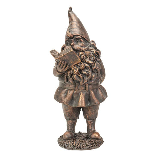 Happy Garden Gnome Bronze Finish Resin Figurine (Reader)