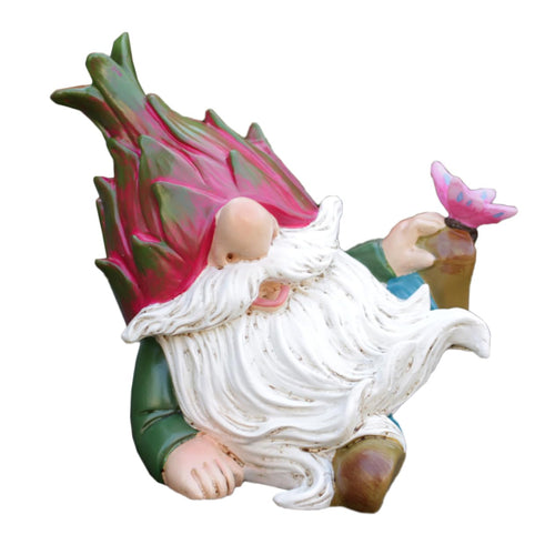 Happyyami Adorable Resin Garden Gnome Doll for Home Decor Handicraft Random Flowers for Room Office