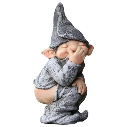 Iouyjiu Funny Design Garden Decorations, Resin Garden Ornaments Outdoor, Cute Yard Gnome Statues, Small Outdoor Gnome Figurines 9x9x15cm for Garden, Yard, Patio, Outdoors, Gray Color