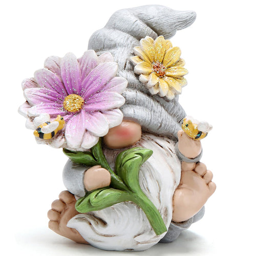 Hodao Spring Gnome Decoration Flower Gnomes Ornaments Decor Gifts Summer Gnomes Figurines Spring Gnomes for Garden Decor Spring Sculptures Gifts for Outdoor Decor for Mom, Grandma (Grey-Man)