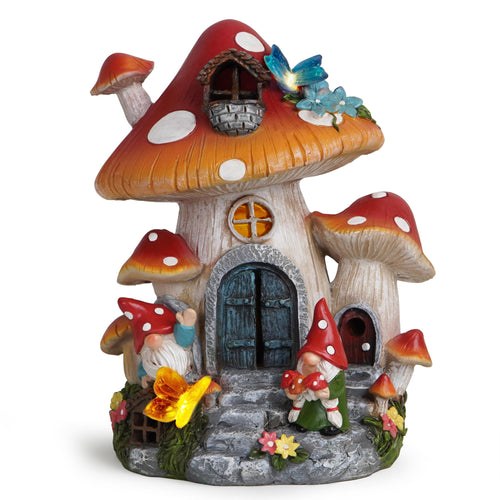 ILLUMINEW House Garden Statues with Solar Lights, LED Cute Flocked Fairy House with Gnomes Garden Figurine, Outdoor Patio Yard Lawn Decorations Gift