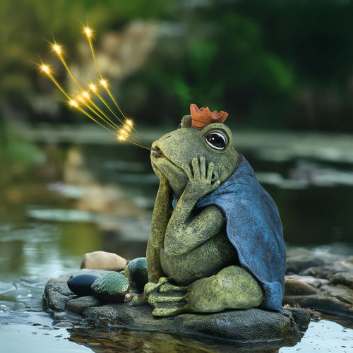 hvfun Solar-Powered Frog Prince Spitting LED Light – Resin Garden Statue with Waterproof Design