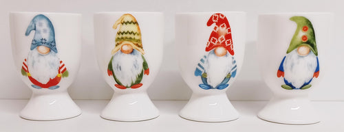 Lucky Gonks Egg Cups Set of 4 Bone China Gnome Like Figure Egg Servers Hand Decorated in UK