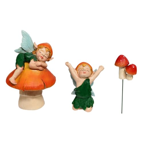 Milisten 1set Vivid Mushroom Fairy Figurine Outdoor Garden Decor Charming Lawn and Patio Statues for Landscape and Flowerpot Decoration