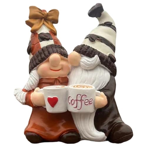 mivceklw Romantic Design Miniature Dwarf Figurines Resin Couple Gnome Statue Sturdy Coffee Gnome Decor Decorative Couple Figurines 10x5x12cm for Home, Indoor, Garden, Outdoor, Multicolor