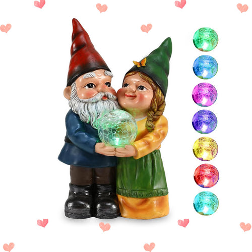 MIBUNG Garden Gnome Couple in Love Carrying Magic Orb with Multicolor Changing Solar Lights, Romantic Gnome Lovers Statue Figurine Outdoor Patio Yard Lawn Home Decor, Wedding Christmas Ornament Gifts