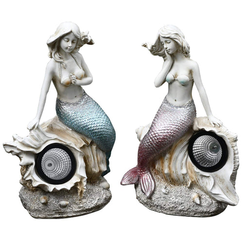 MYYINGBIN A Pair Of Mermaid Solar Light Statue Resin Garden Sculptures Solar Lamp Outdoor Fairy Ornament For Lawn Patio