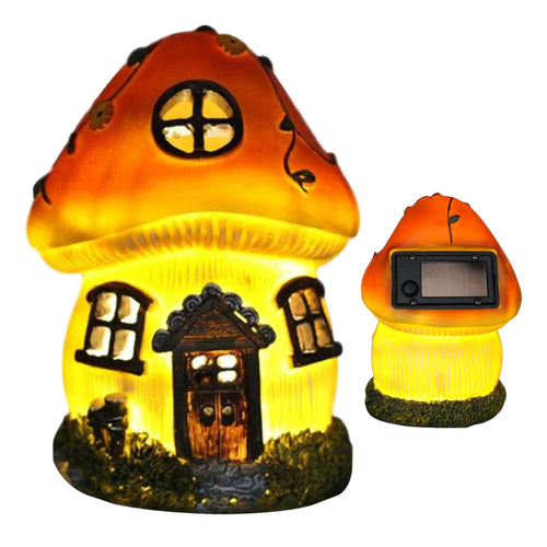 mushrooms Fairy House with Solar Lights Resin Garden Onament Solar Powered mushrooms House Figurines Garden Decor for Patio Yard, Garden Statue