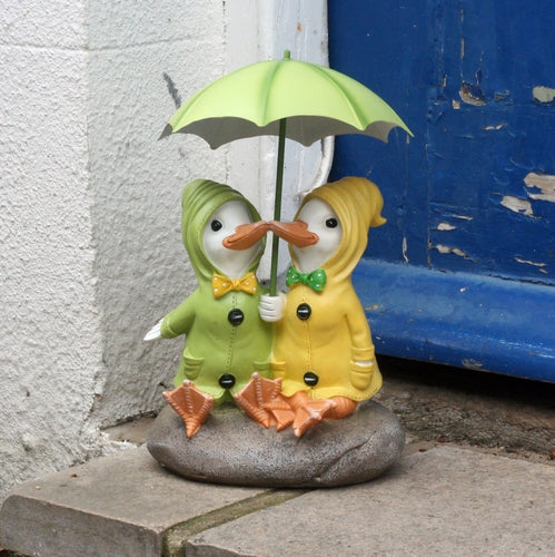 Shudehill Dilly and Dally Puddle Ducks Sitting with Umbrella Garden Ornament