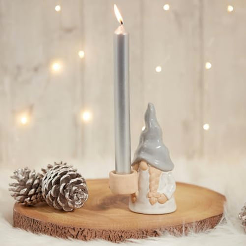 Super Cute Christmas Grey Gonk Gnome Tall Candle Holder - Candle Not Included