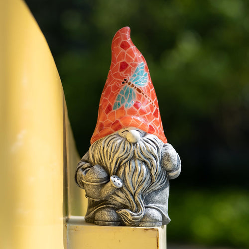 Suyorpe Garden Gnomes Decor Outdoor,Solar Outdoor Statue for Garden Patio Lawn Porch - Gnome Ornament with Red Dragonfly LED Lights Hat,Funny Gnomes Gift,Resin Solar Decorations,8.11 Inches