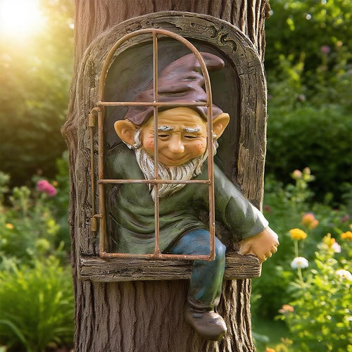 Teaeeno 12-inch Elf Out The Door Tree Hugger Statues,Whimsical Outdoor Decor,Vivid Fairy Gnome Decor,Garden Sculpture Ornaments for Tree Hugging Fairy Gnome Figurines Gift for Patio, Porch Decor