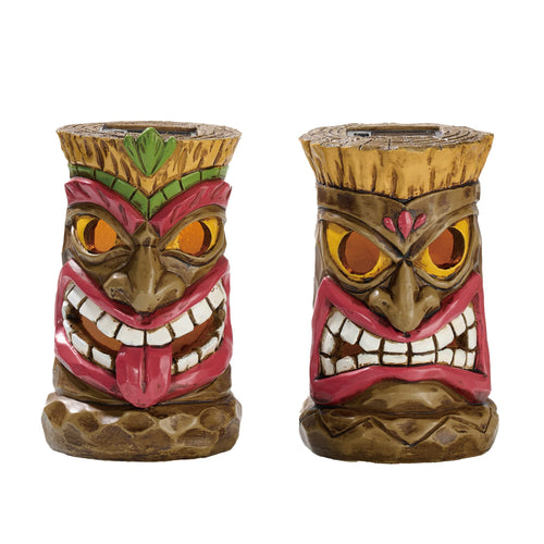 TERESA'S COLLECTIONS Tiki Head Garden Decor with Solar Outdoor Light, Set of 2 Tropical Hawaiian Tiki Torch Resin Christmas Decorations Garden Sculptures & Statues Yard Decor Thanksgiving Gifts 6"