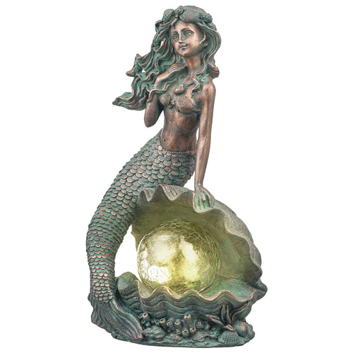 TERESA'S COLLECTIONS Mermaid Garden Statues with Solar Outdoor Lights for Outdoor Decor, Bronze Patina Fairy Sculptures & Statues, Mermaid Figurines Garden Decor Gifts for Mom Yard Decor, 13"