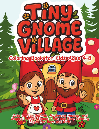 Tiny Gnome Village Coloring Book for Kids Ages 4–8: Cute Garden Gnomes, Mushroom Houses, and Magical Forest Scenes – Fun and Easy Coloring Pages for Boys and Girls