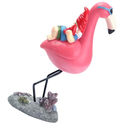 Toyvian Naughty Resin Gnome Statue on Flamingo Ornament for Garden Decor Wear-Resistant Lawn Gnome Adornment Funny Outdoor Decoration for Courtyards and Patios