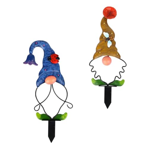 Toyvian 2pcs Garden Gnome Stakes Decorative Gnome Ornaments for Outdoor Decor for Christmas and Themed Parties Vivid Design for Garden Enhancement