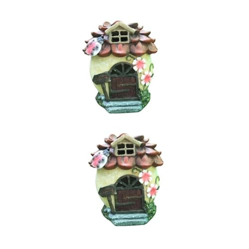 Toyvian 2 pcs Solar Powered Creative House Micro Landscape Ornament for Garden Outdoor Decor Unique Resin Glowing Adornment for Porch and Pathway Lighting