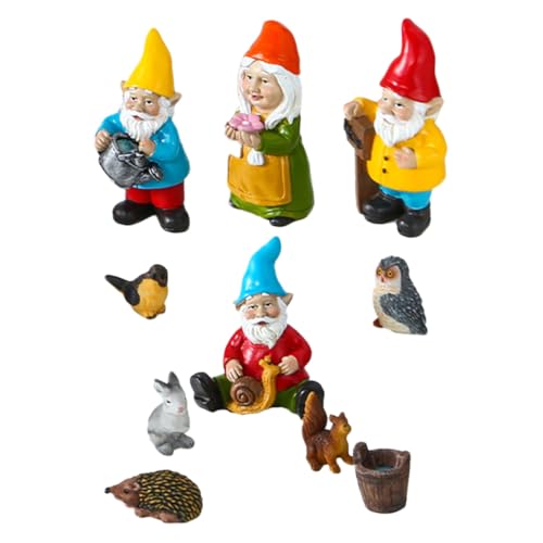 Toyvian 10pcs Assorted Color Resin Gnome Garden Ornaments Decorative Lawn Adornments for Home Landscape Decoration