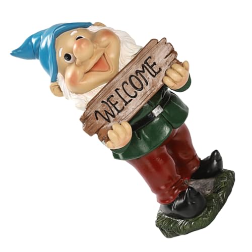 Toyvian 1pc Welcome Resin Gnome Ornament Garden Decor for Blue Green Red Charming Outdoor Decoration Unique for Friends for Landscape and Entrance Decor
