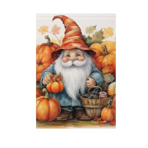 Watercolor Gnome and Pumpkins Double Sided Large Garden Flag for Outside Yard Decor 28 x 40 Inch