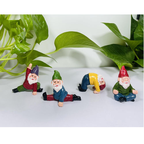 Wetufin - 4pcs Funny Yoga Gnome Garden Gnome Statues Yoga Decoration Gnome Resin Sculpture Decorations Novelty Gift for Desk Indoor Outdoor Yard Patio Lawn Figurines Landscape Decor