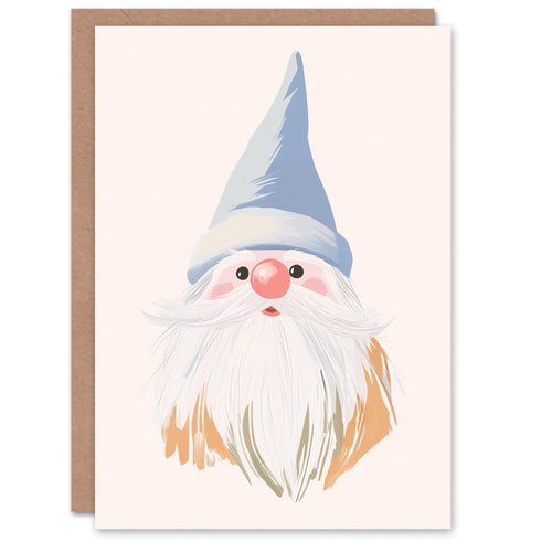 Wee Blue Coo Greeting Card Surprised Gonk Garden Gnome Soft Pastel Colour Blank For Him Or Her Art Xmas Christmas Card