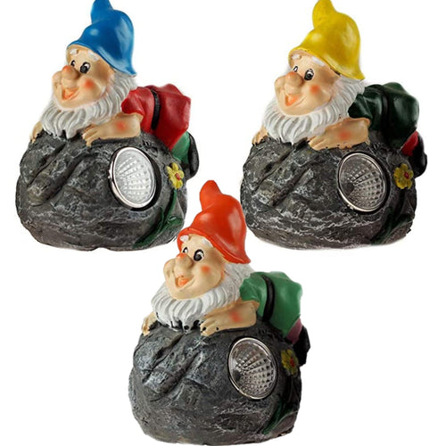 Widdle Gifts Ltd Garden Solar Lights Gnome on a Rock Ornament - Set of 3 1669