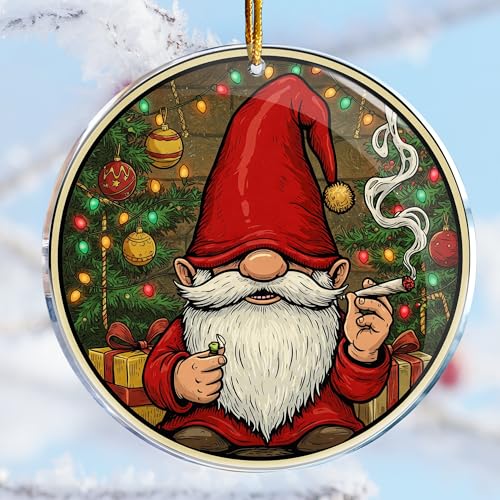 Christmas Ornaments Decorations - Gag Gifts - Nasty Naughty Gifts - White Elephant - Stocking Stuffers (Santa Gnomes Snowman Rudolph Smoking Weed Bong Cannabis Get High 1)