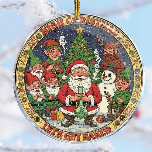 Christmas Ornaments Decorations - 3.6 in Acrylic Two Sided Printing (Let's Get Lit Gnome Weed Leaf 2 - Cannabis Leaf and Gnome Smoking Friend Gifts Ideas)