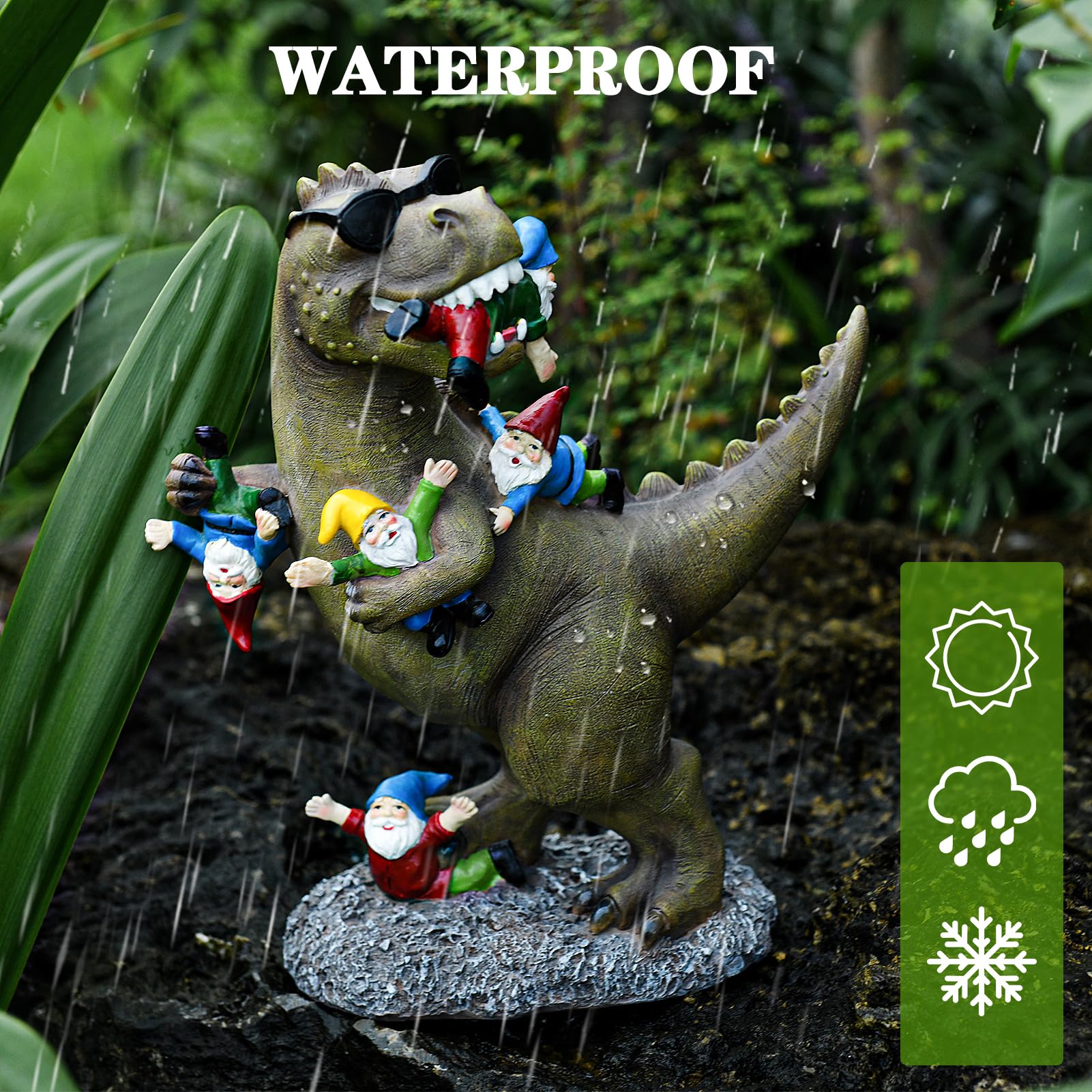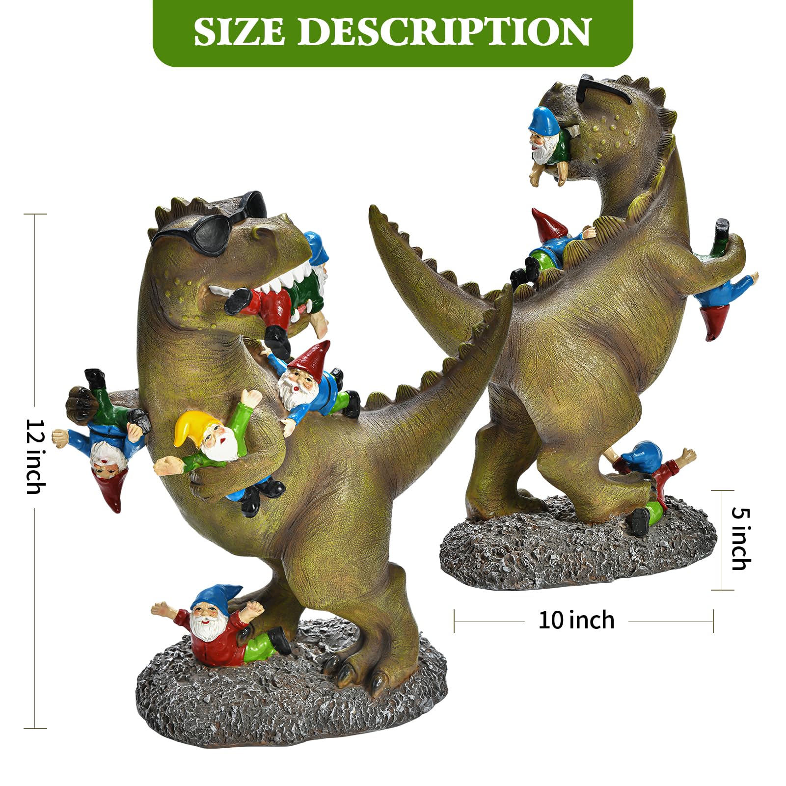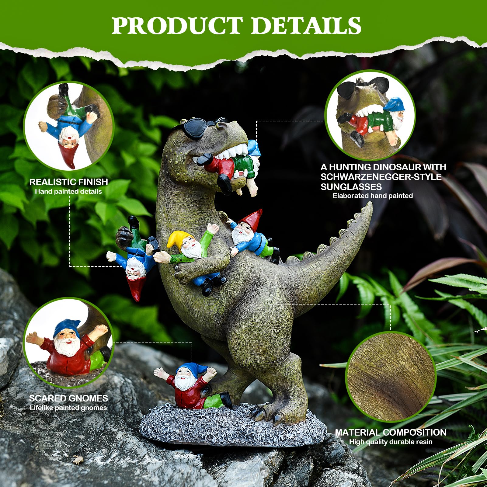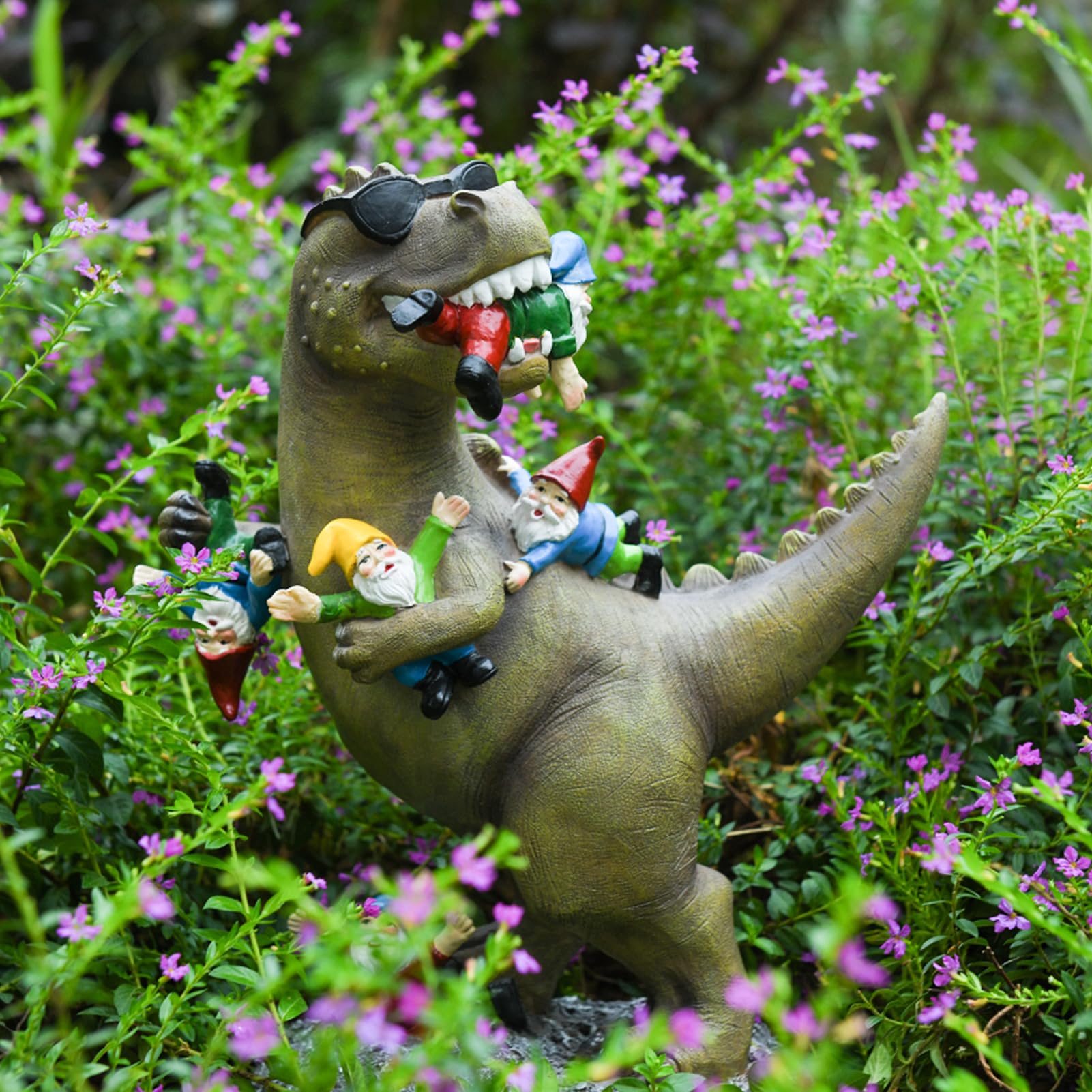 - UNIQUE GARDEN DECOR - The tall trex sporting sunglasses while feasting on a gnome, adds an unmistakable dose of swagger to this garden sculptures & statues. Its unique design, when placed in your garden or home, is sure to capture everyone's attention.