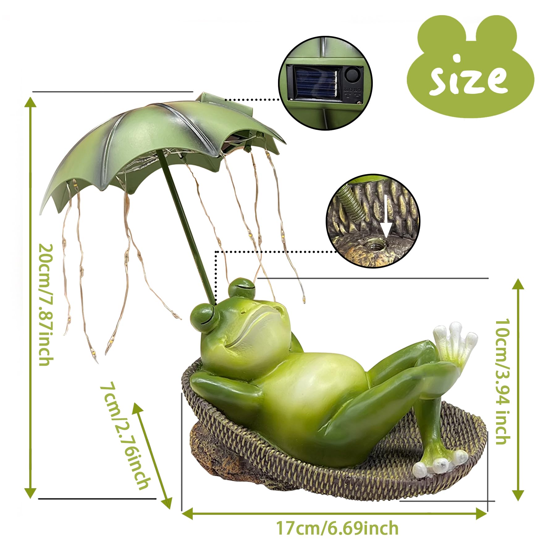 - IP65 Waterproof: Designed for your garden frog solar light garden decoration. Made of waterproof material, you don't have to worry about sun and rain all year round.