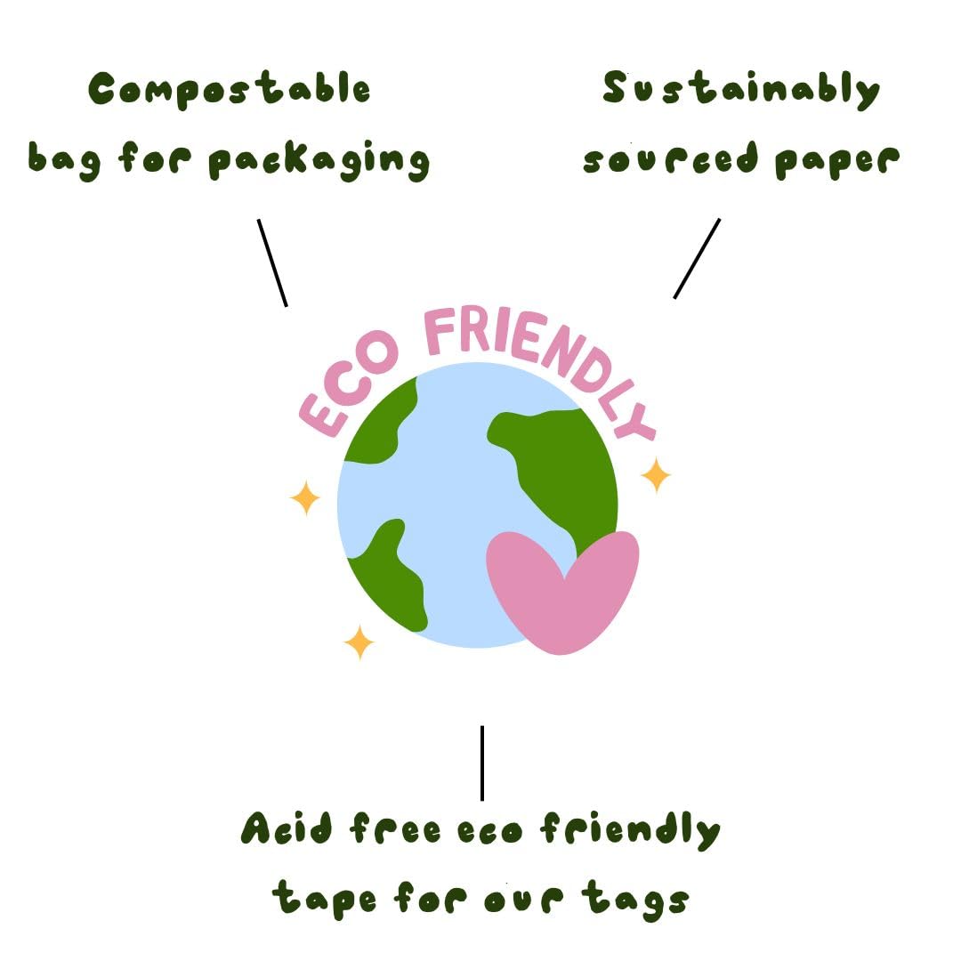 - {Eco-Friendly}: We love our planet and use sustainably sourced paper, eco-friendly tape, and cellulose biodegradable bags.