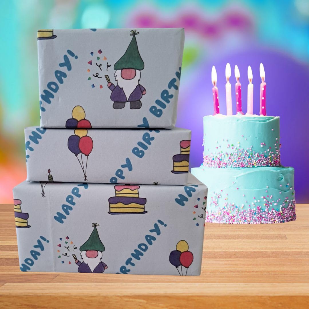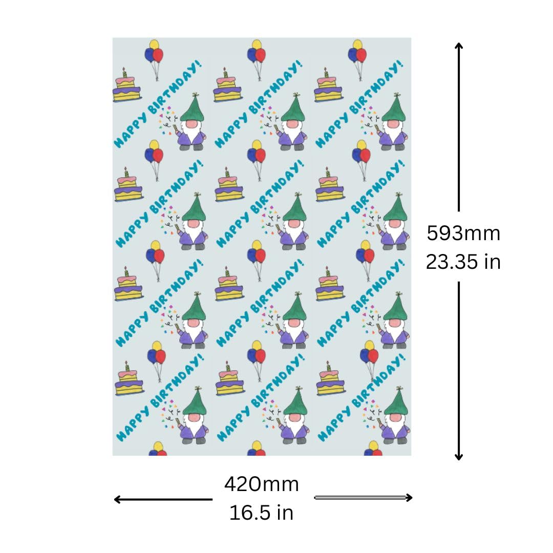 Details: BeFindSee Gift-wrapping sheets. 4 Unique Sheets Per Package With 4 Stick-on Gift Tags. Colorful Birthday Wrapping For Men, Women, or Children - Gnome themed - Eco-friendly - (593mm x 420mm or 23.5in x 16.5in).