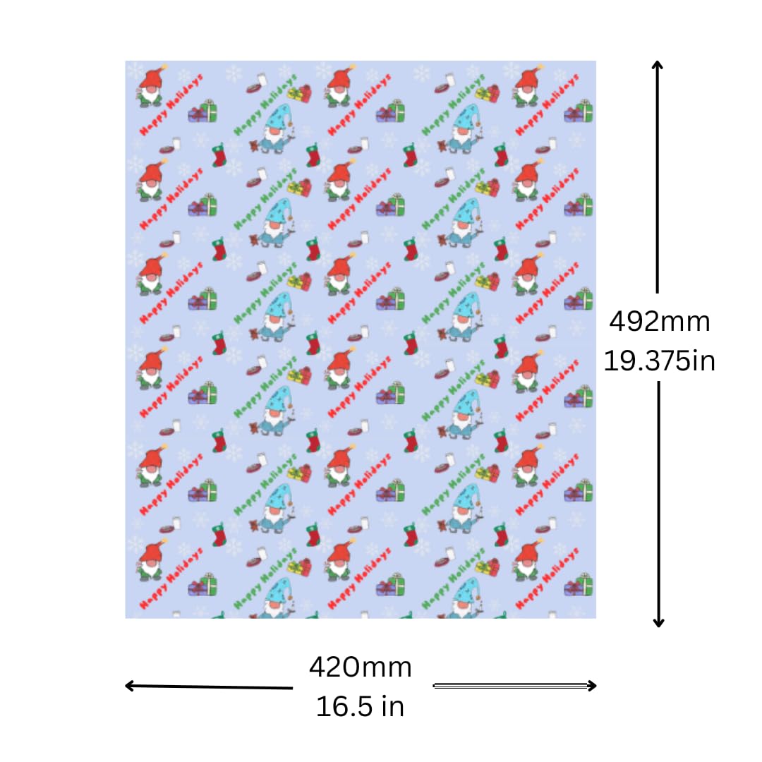 Details: BeFindSee Gift-Wrapping sheets. 4 Unique Sheets Per Package With 4 Stick-on Gift Tags. Blue Holiday Paper for Gift-Wrapping. Happy Holidays - Gnome themed - Eco-friendly - (492mm x 420mm or 19.375in x 16.5in).