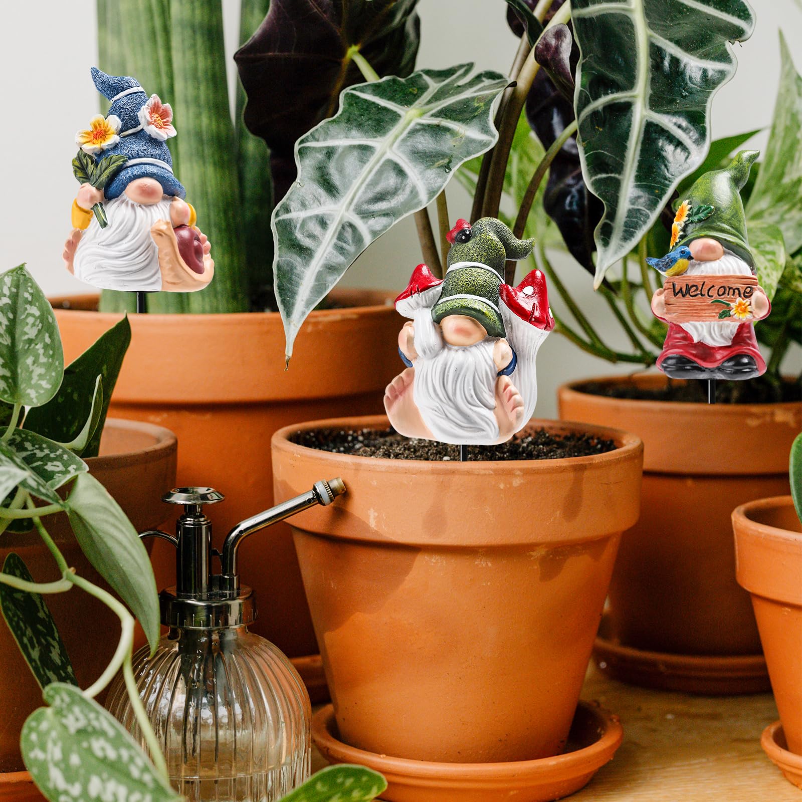 Details: Chonsun Gnomes Garden Stakes Plant Decorations for Pots Outdoor Art 4 Pack Miniature Gnomes Decorations for Yard Decorative Garden Stakes