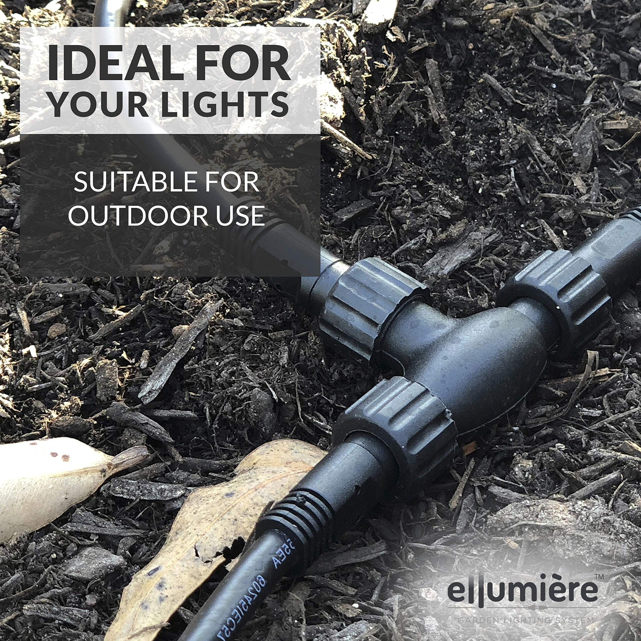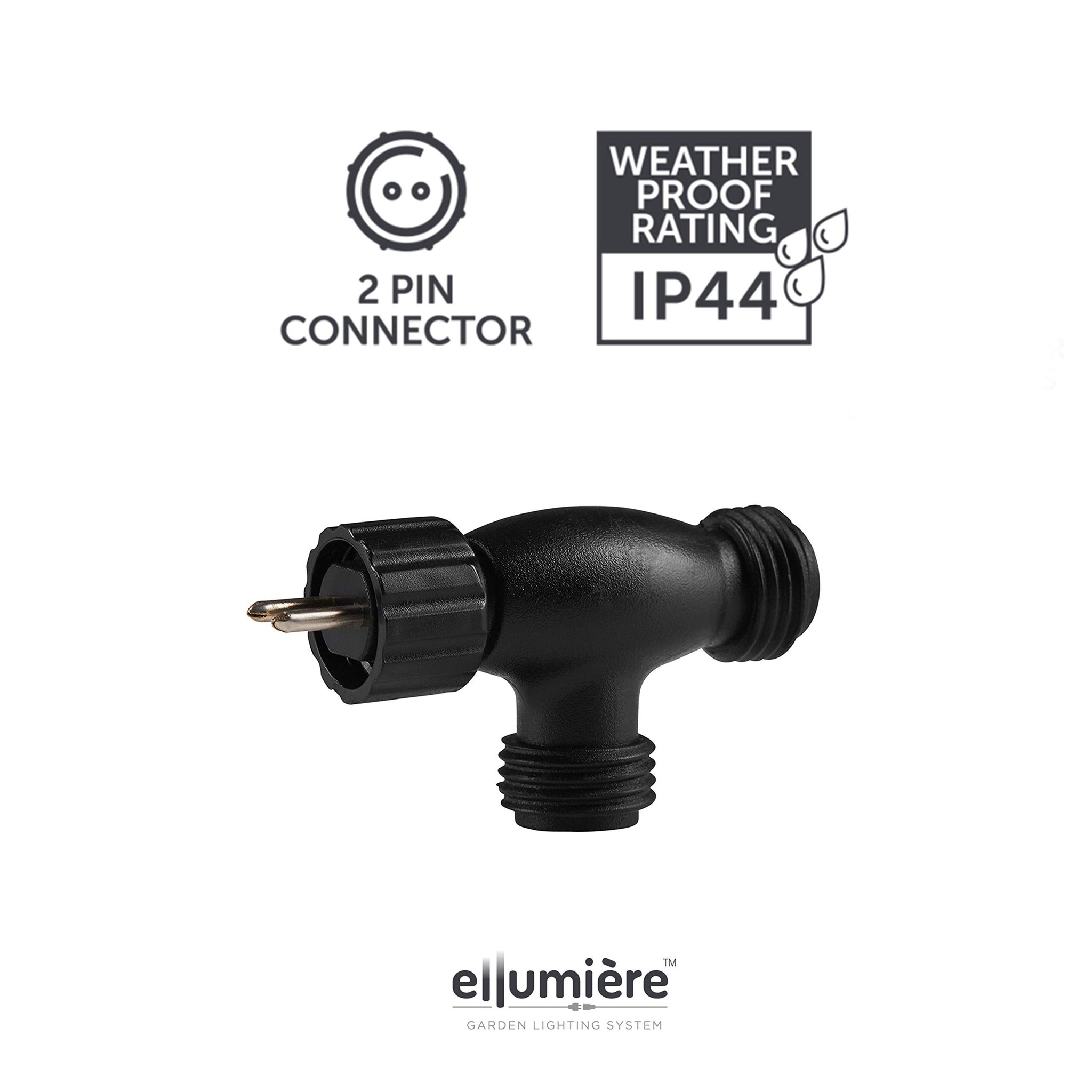 Details: Attach your Ellumiere lights to each other with the T-Piece Adaptor. Features a pvc casing and 2-pin screwed joins for easy, weatherproof connection. You need a T-Piece with every light except the last one. For example, if you purchase 5 small spot lights, you will need 4 T-Piece's.