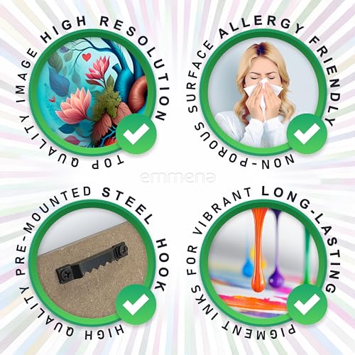 - DURABLE AND DURABLE - The pre-assembled steel hook makes our paintings very durable. The colours are vibrant and long lasting, ensuring excellent quality