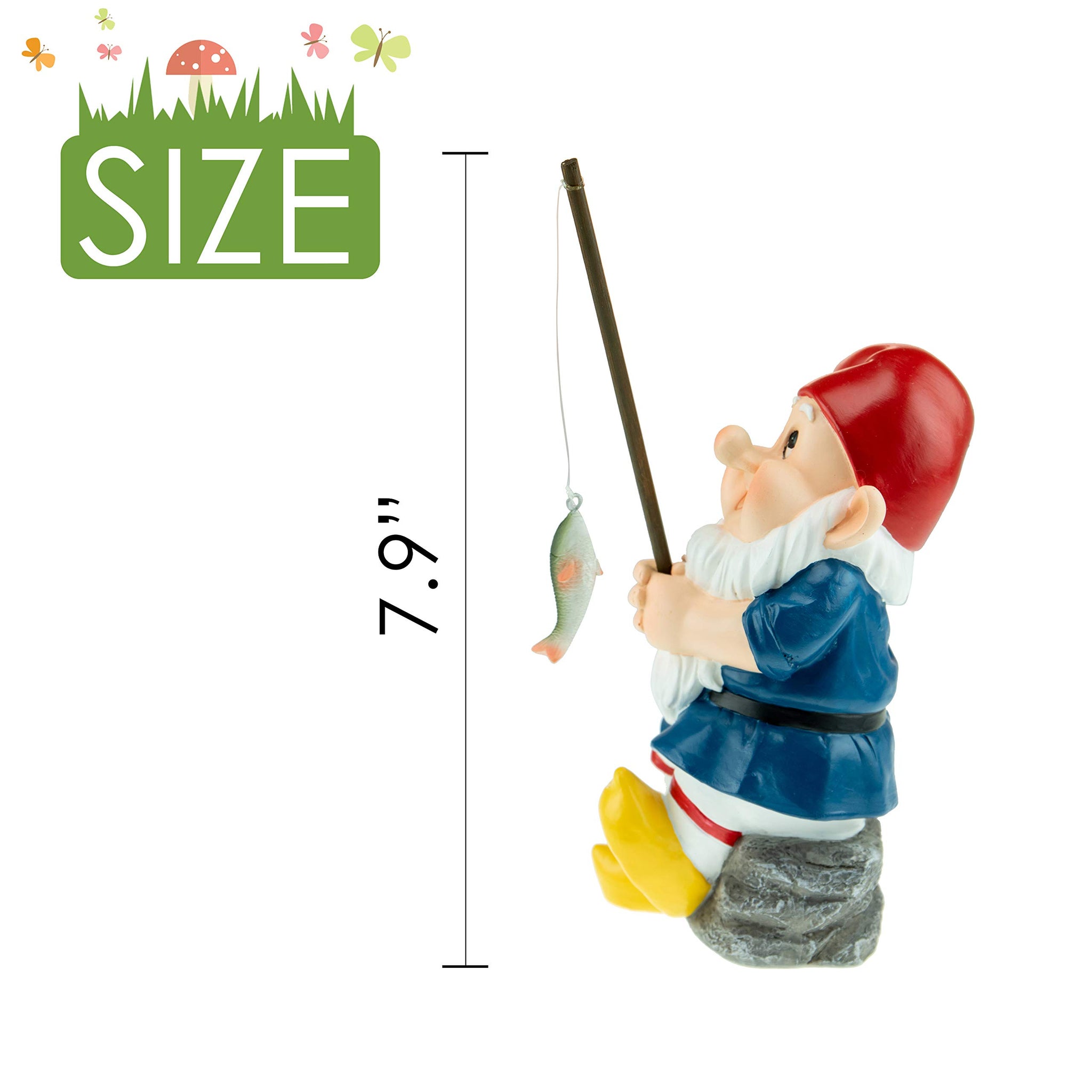 Details: Garden Gnome Figurine Polyresin Statue for Lawn Ornaments, Indoor or Outdoor Decoration, 8 Inches Tall, Fisherman