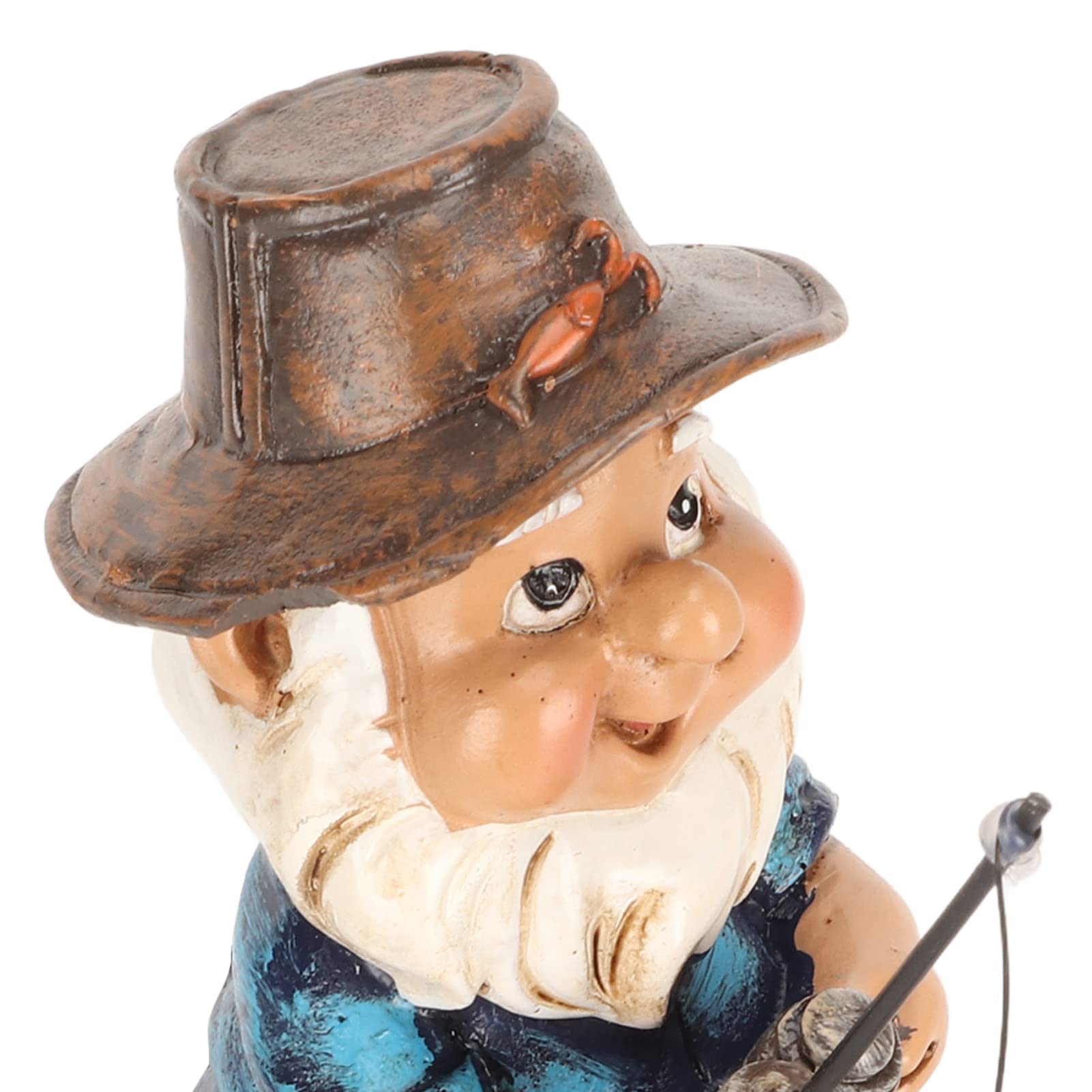 - UV RESISTANT: This garden gnome statue is hand cast using crushed stone bonded with a resin that is UV resistant.Fishing Gnome Statue is a perfect accessory for your koi pond or other backyard water feature, as well as on the porch or in the landscaping of any angler's home.
