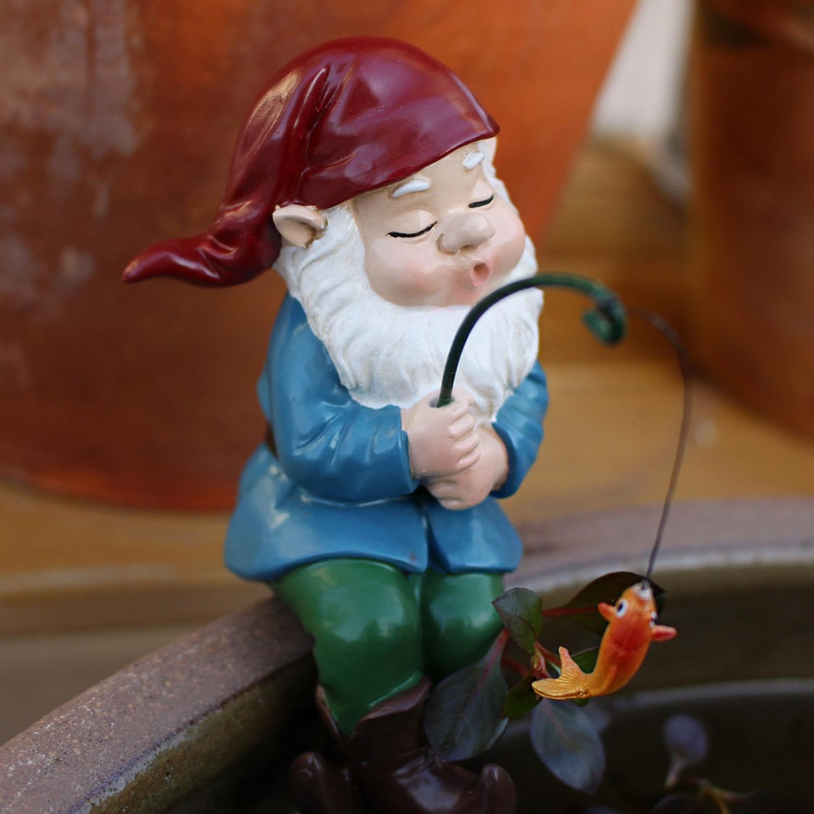 - Widely Use: Bring a little laughter to your favorite spaces with our fishing gnome decoration. Ideal for plant pot displays, aquariums, and home decor, it's sure to brighten up any environment.