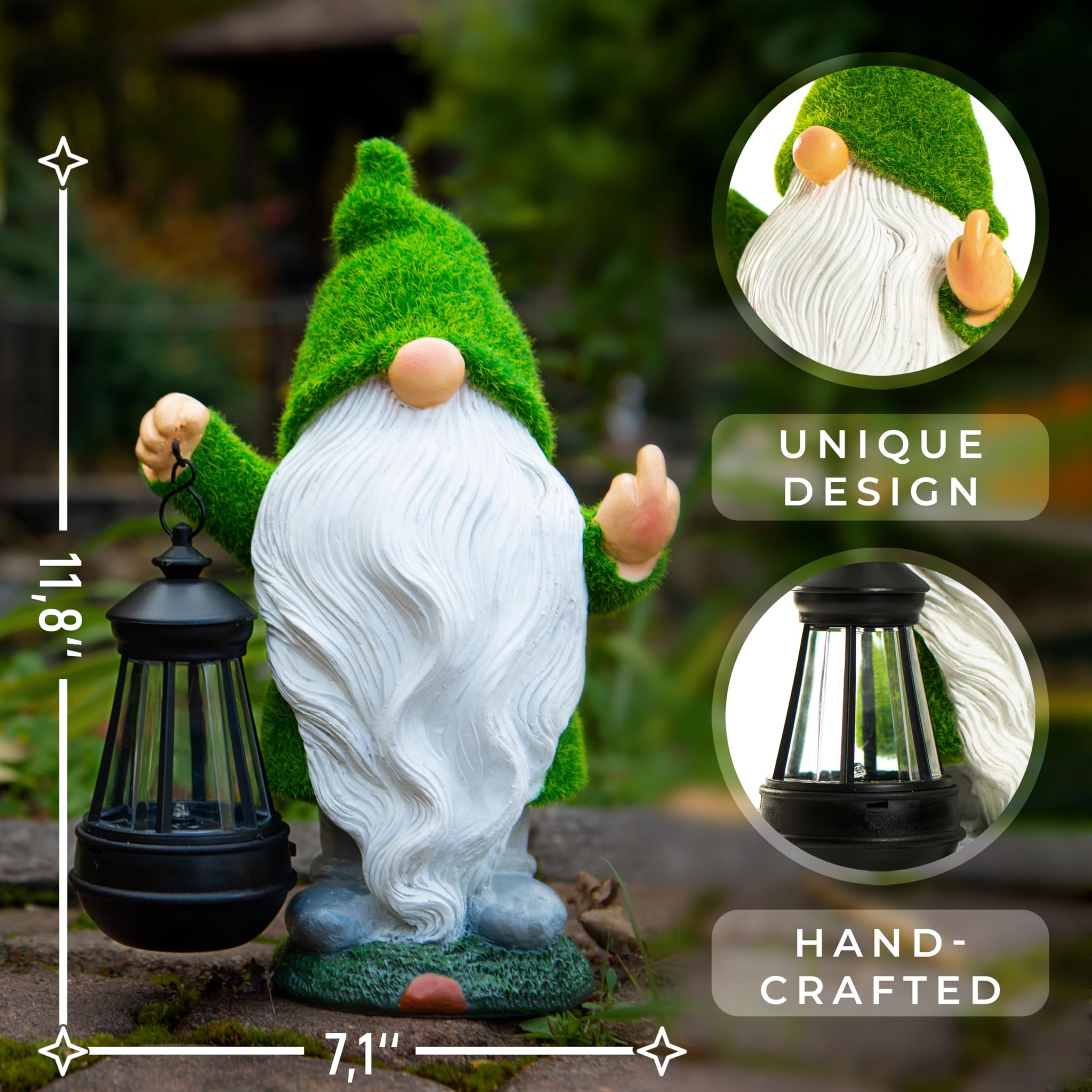 - Exquisite Craftsmanship: the green moss of gnome is the result of flocking. Extraordinary garden sculptures & statues make superb gnomes decorations for yard, and house decorations for home as well.